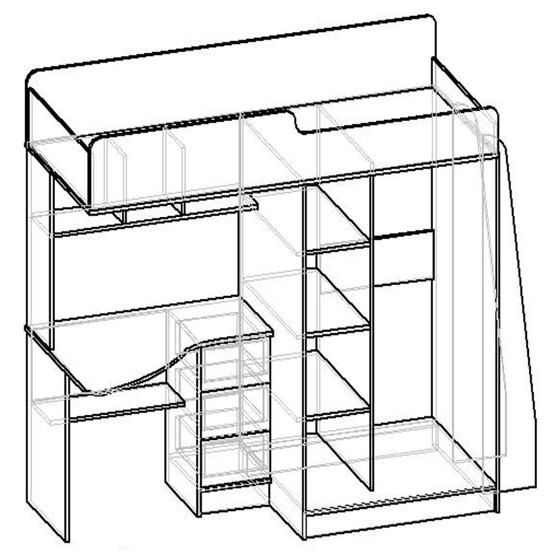 - Кровать на верхнем ярусе.