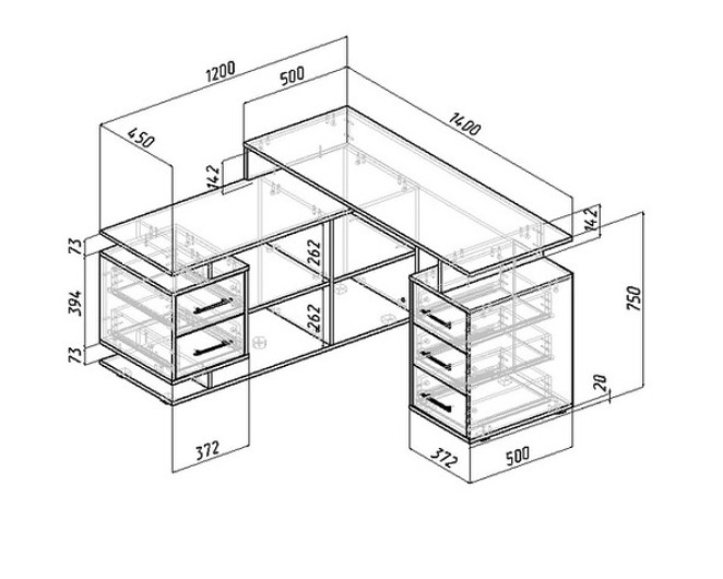 Габаритный размер (Ш*Г*В): 1400*1200, h750; Тумба h600 мм.