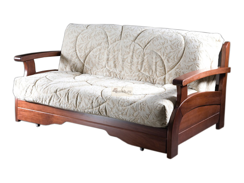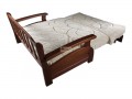Диван-аккордеон Лотос с деревянными подлокотниками имеет довольно большие габариты, однако он может удачно вписаться и в интерьер небольшой комнаты. Под сиденьем у данной модели мебели находится отделение для хранения постельного белья, а вот у дивана Люкс ящик для белья отсутствует.